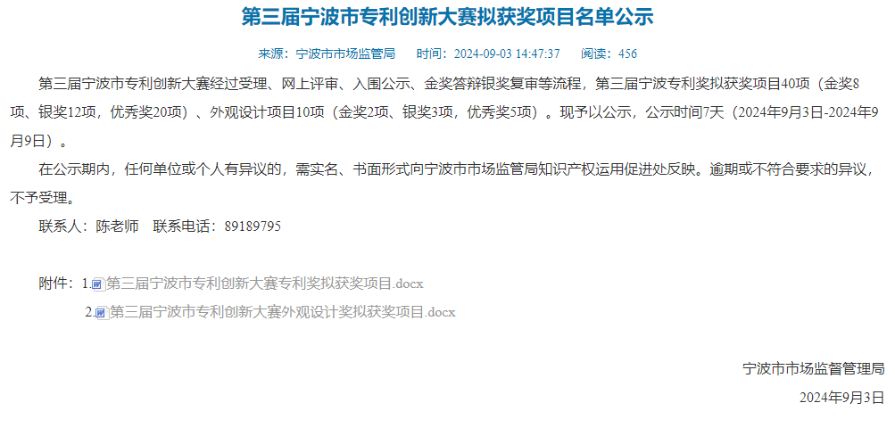 喜訊 | 我院一項(xiàng)專利發(fā)明榮獲第三屆寧波市專利創(chuàng)新大賽專利優(yōu)秀獎(jiǎng)