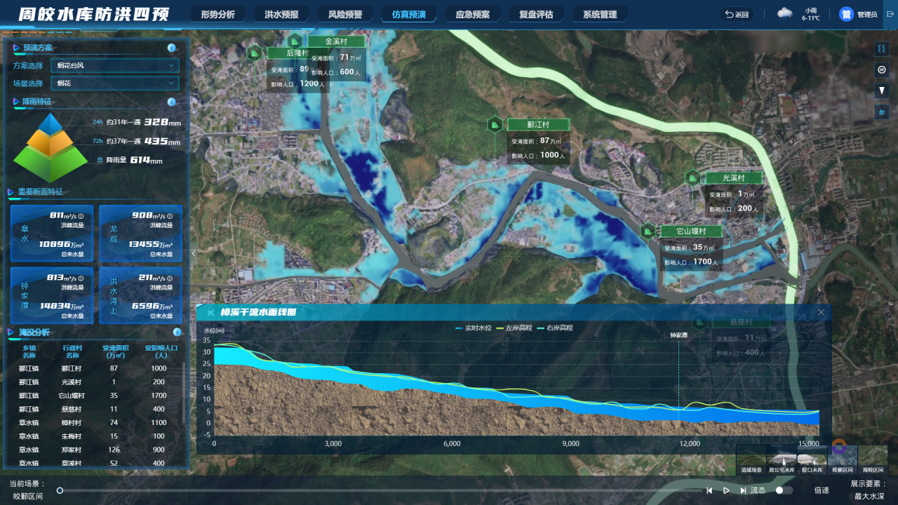 目前,本案例核心成果已在寧波市6座大型和10座重要防洪中型水庫實(shí)際應(yīng)用并取得成效,建設(shè)了“寧波市大中型水庫防洪調(diào)度統(tǒng)一管理系統(tǒng)”,助力寧波市水庫管理中型實(shí)現(xiàn)全市大中型水庫的防洪調(diào)度統(tǒng)一管理。其中,作為本案例的典型實(shí)踐應(yīng)用,“數(shù)字孿生周公宅-皎口梯級水庫”依托水利部 2022 年“數(shù)字孿生流域建設(shè)先行先試工作(2022-2023年)”先行先試試點(diǎn)項(xiàng)目開展實(shí)施,并成功支撐周公宅和皎口兩座水庫有效應(yīng)對 2022 年的“軒嵐諾”和“梅花”、2023 年的“杜蘇芮”和“卡努”、2024 年的“貝碧嘉”和“康妮”等多場臺風(fēng)暴雨的實(shí)戰(zhàn)驗(yàn)證。