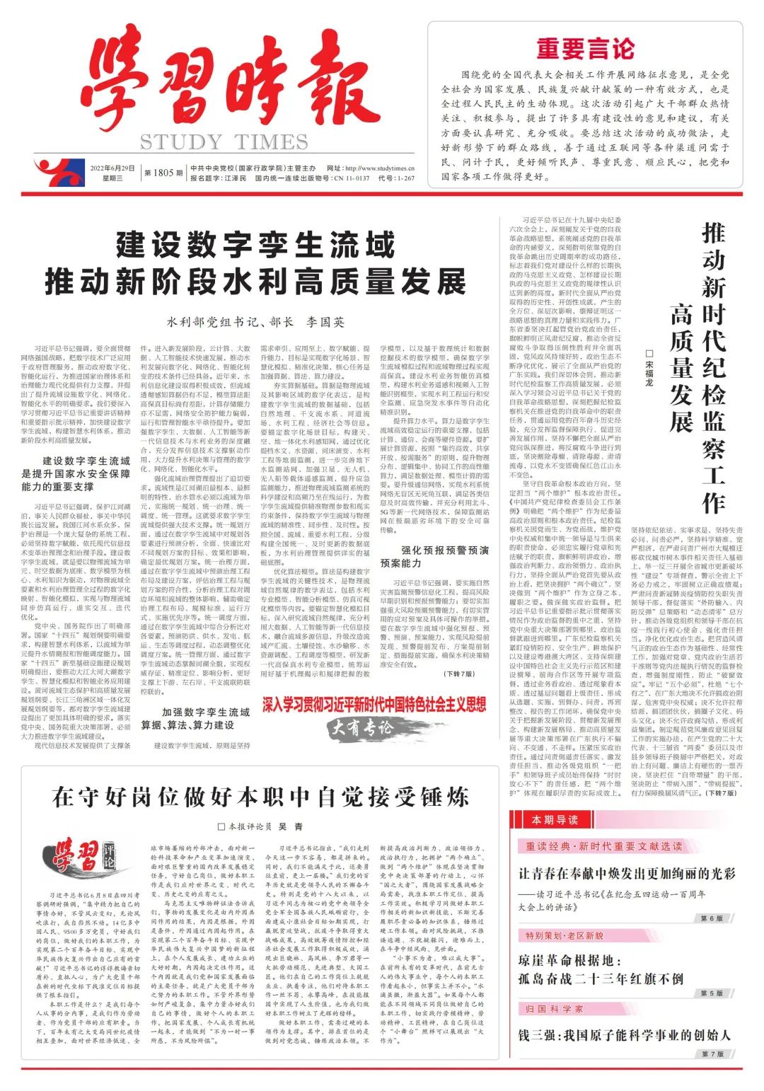 水利部黨組書記、部長(zhǎng)李國(guó)英:建設(shè)數(shù)字孿生流域 推動(dòng)新階段水利高質(zhì)量發(fā)展