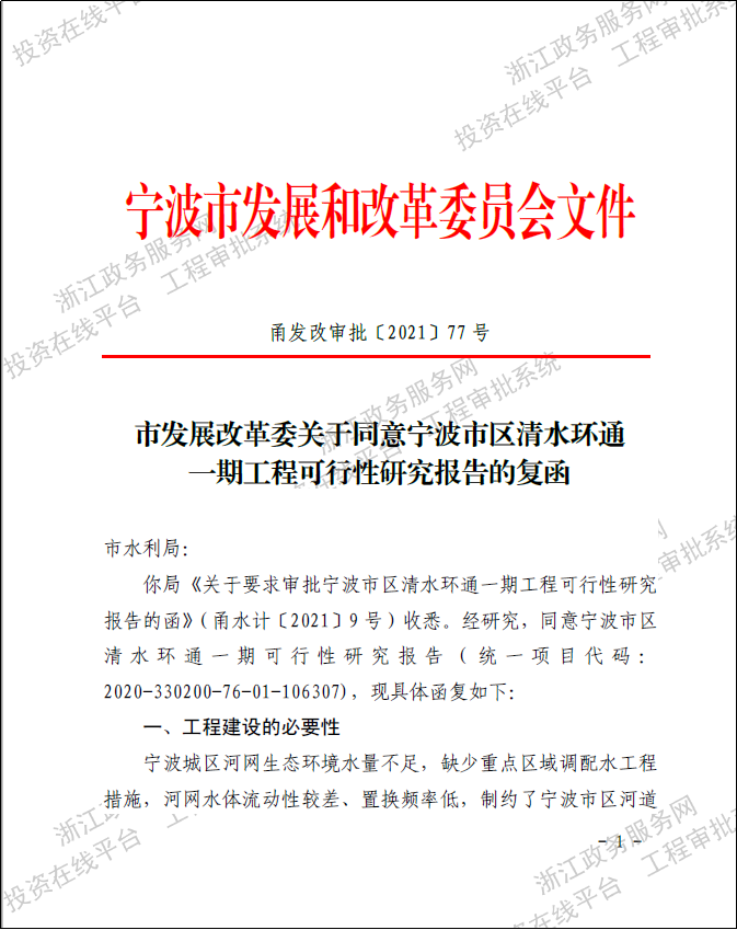 寧波市區(qū)清水環(huán)通一期工程西起機(jī)場高架、東至福慶路,北起北環(huán)高架,南至鄞州大道,面積合計(jì)約146km2,是寧波市區(qū)重要的河網(wǎng)引配水工程,亦是緩解老城內(nèi)澇壓力的有力舉措。為提升河網(wǎng)環(huán)境用水量、促進(jìn)水系互聯(lián)互通、改善水體流態(tài),寧波市區(qū)清水環(huán)通一期工程創(chuàng)新性的引入“精準(zhǔn)補(bǔ)水、高速水路”的計(jì)理念,切實(shí)解決了寧波城區(qū)現(xiàn)狀大水漫灌的河網(wǎng)調(diào)水模式下調(diào)水效率低下、補(bǔ)水針對(duì)性不強(qiáng)等痛點(diǎn)、難點(diǎn)問題。該工程可研報(bào)告于2021年5月獲寧波市發(fā)展和改革委員會(huì)批復(fù)。